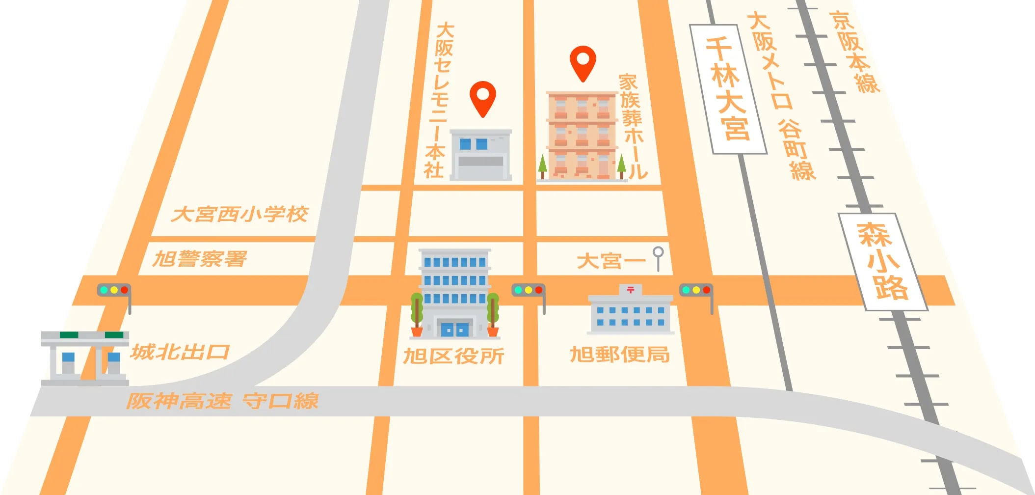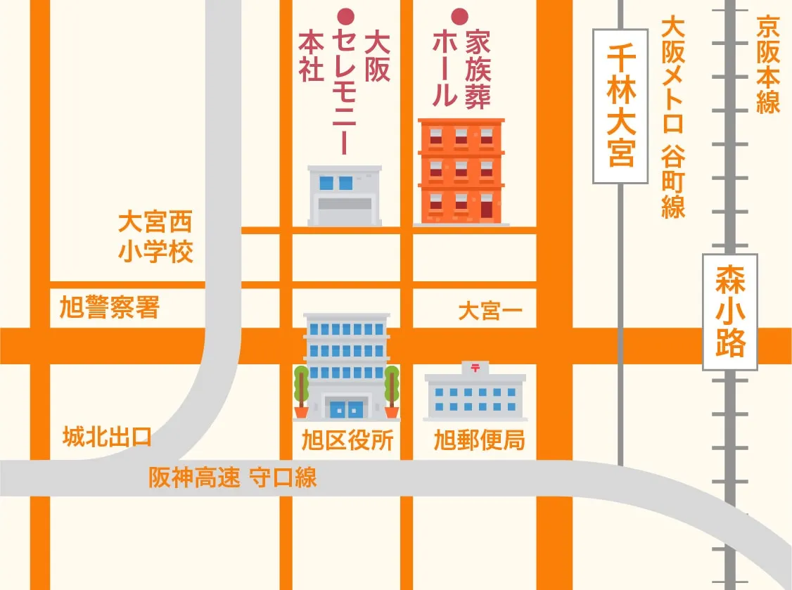 地下鉄谷町線「千林大宮駅」4番出口から南西へ徒歩約5分