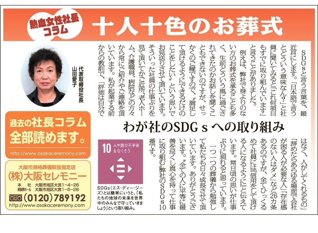 一つ一つの葬儀から勉強して私たちも日々成長させて頂いています。ありがとうございます。“全ての人に平等に最善を尽くし真心を持って仕事に取り組む”弊社のSDGs10番です。