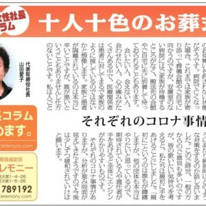 特別介護老人ホームの管理職をしている彼女は「実は数年前、葬儀のことで親族の方々の意見がまとまらずにもめたことがありました。その時、愛子さんに間に入っていただいて無事に葬儀を終えることができました。その節は本当にお世話になりました」と丁寧に話し、私は4〜5年前にそんなことがあったことを思い出し、つくづく世間は狭いものだと思いました。それから、合唱団に入団し今ではすっかり団員の一員として活躍しています。