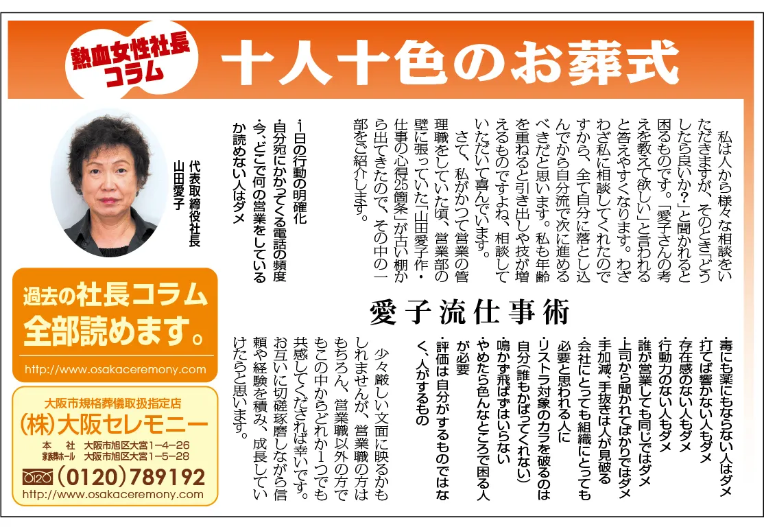 さて、私がかつて営業の管理職をしていた頃、営業部の壁に張っていた「山田愛子作・仕事の心得25箇条」が古い棚から出てきたので、その中の一部をご紹介します。