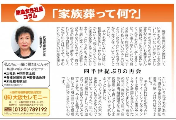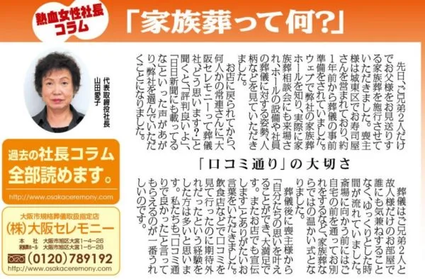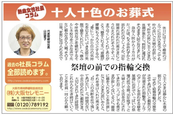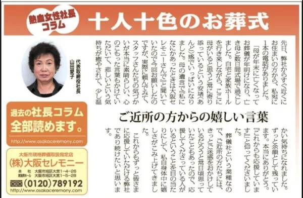 と話すのは大阪セレモニーの山田愛子社長。