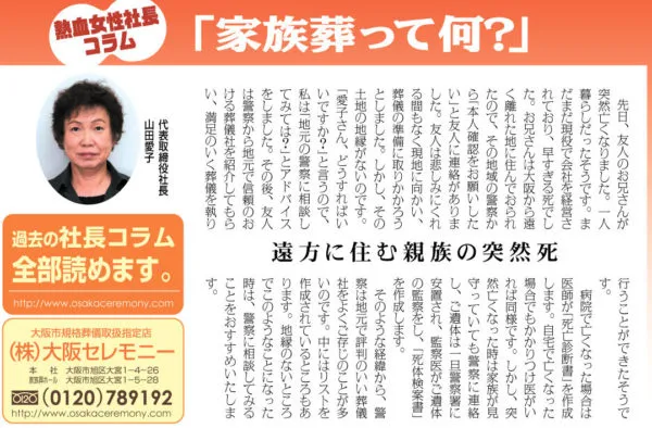 「大阪セレモニーは社員がいい」とご遺族に聞かれ、