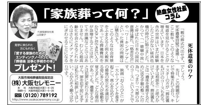 「葬送儀礼だけのコースもある。まずは相談を」