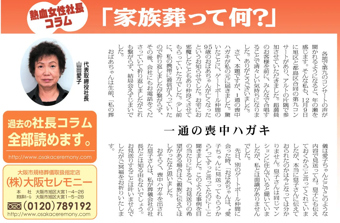 おそらく、喪中ハガキを出された息子さんは、私が葬儀会社の社長だとは知る由もないでしょう。