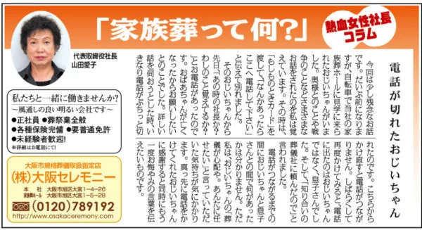 大阪市のお葬式・家族葬は大阪市規格葬儀取扱指定店《大阪セレモニー家族葬ホール》におまかせください