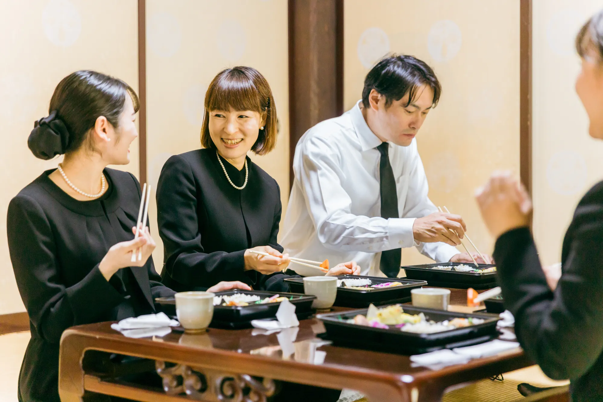 食事中は故人の思い出話や近況報告など、和やかな雰囲気で進行することが望ましいです。
