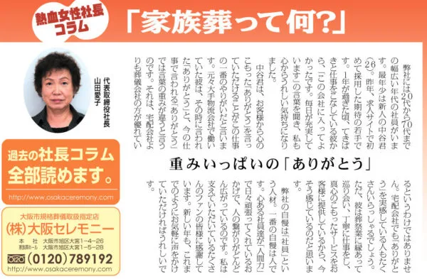 大阪市のお葬式・家族葬は大阪市規格葬儀取扱指定店《大阪セレモニー家族葬ホール》におまかせください