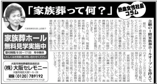 大阪市のお葬式・家族葬は大阪市規格葬儀取扱指定店《大阪セレモニー家族葬ホール》におまかせください