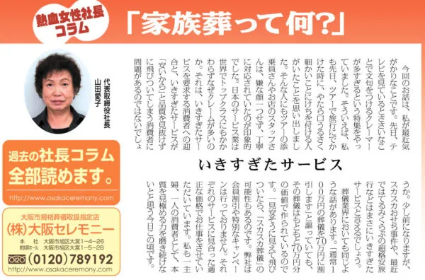 私は葬儀の仕事をしていることもあり、様々な人の生き様に自分の人生を照らし合わせながら思うことが多々あ…