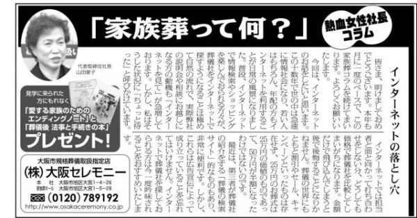 1月17日号 皆さま、明けましておめでとうございます。 本年も月に一度のペースで、この家族葬コラムを…