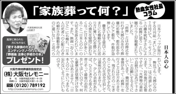 2008年1月12日号 新年あけましておめでとうございます。 今年は私が大阪セレモニーを創業してから…