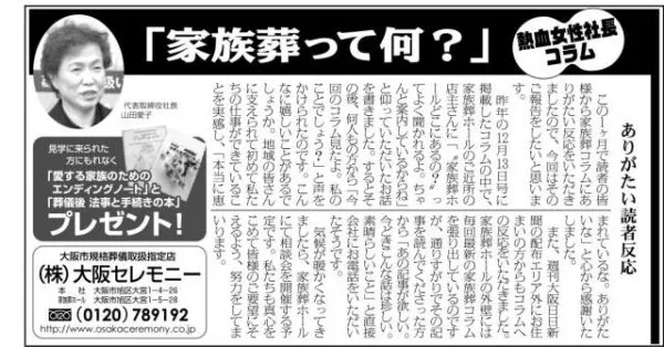 2月28日号 この1ヶ月で読者の皆様から家族葬コラムに ありがたい反応をいただきましたので、 今回は…