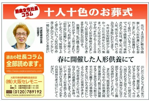 先日、4月28日に弊社で開催した「人形供養」に私も参列しました。人形供養は1年に1度行っているイベン…
